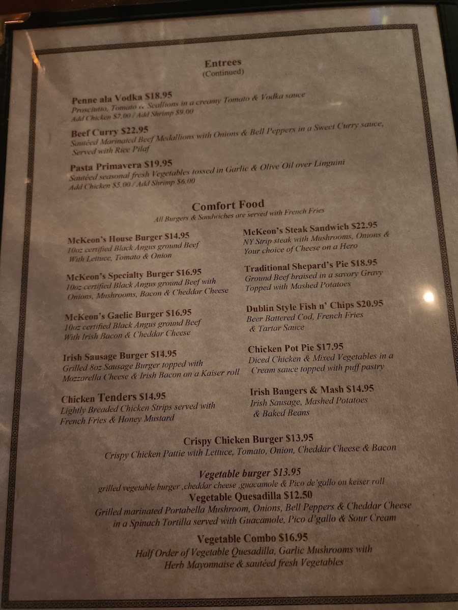 Welcome to McKeon's Bar and Restaurant, a cozy gem located at 996 McLean Ave, Yonkers, NY. This inviting spot offers a diverse menu that captures the essence of comfort food with an Irish twist.